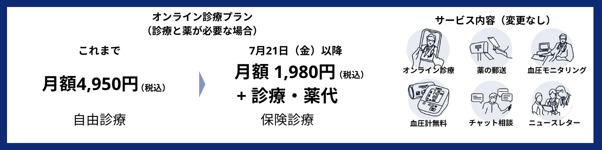 また、サービス本格開始より約10か月が経過し、ご利用者の8割以上が「これまで未治療の方、または治療を中断した方」が占めている状況を鑑み、当初のビジョンどおり高血圧における未治療・未継続の課題解決に貢献し、日本人の高血圧治療の裾野を広げられるとの確信を得ました。今回、保険診療への切り替えを行うことで、より多くの方が治療を始めやすい環境が整うと考えています。